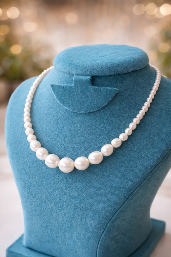 ₹7,999.00Original price was: ₹7,999.00.₹5,999.00Current price is: ₹5,999.00.🤍 Elegant Graduated Pearl Necklace featuring small pearls that gradually increase in size toward the center.